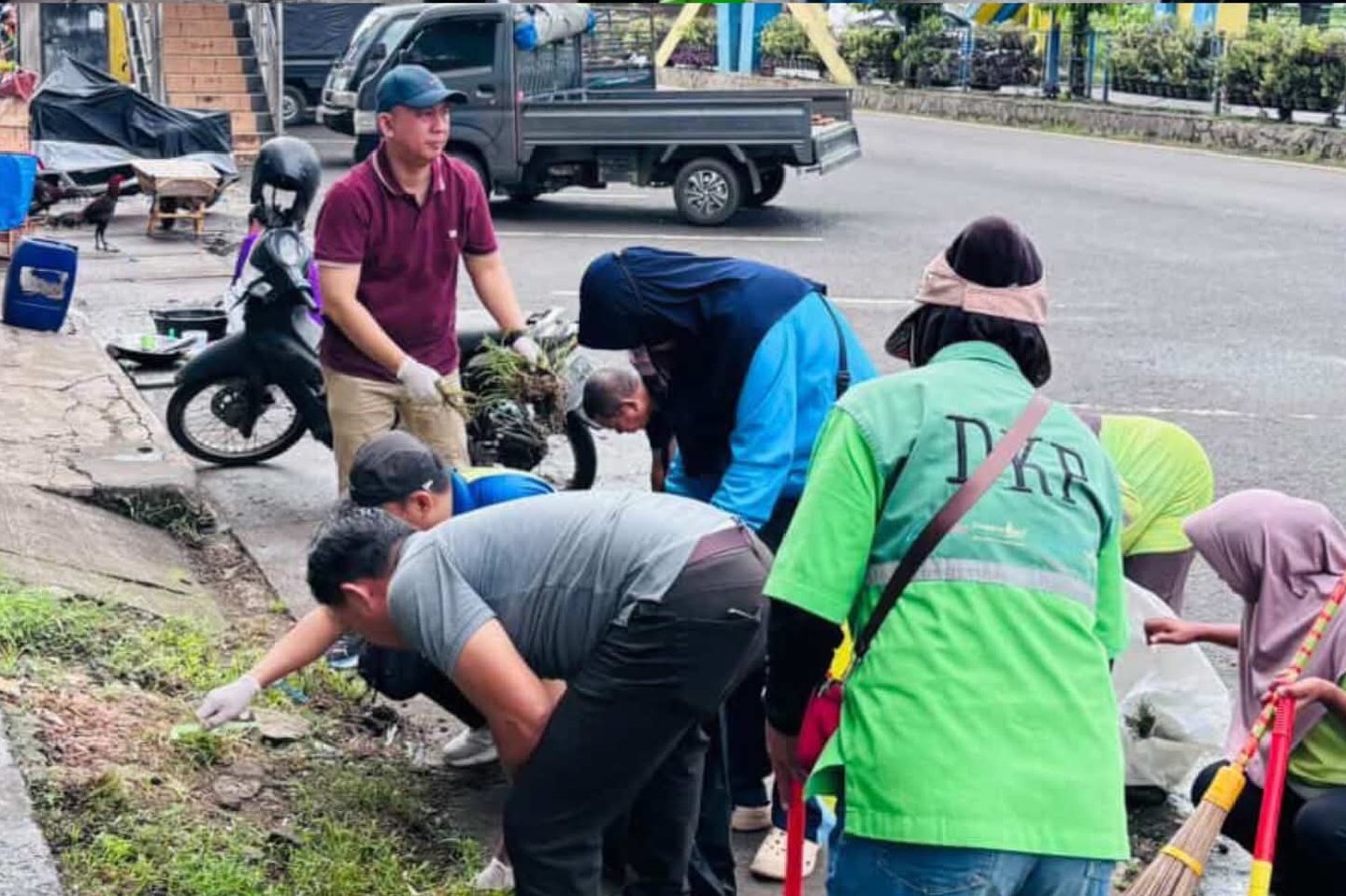 Kegiatan ini melibatkan berbagai unsur, mulai dari Organisasi Perangkat Daerah (OPD), petugas kebersihan, hingga masyarakat sekitar yang turut ambil bagian dalam membersihkan lingkungan. Fokus utama gotong royong ini adalah pembersihan sampah, pemangkasan rumput liar, serta penataan kawasan agar terlihat lebih rapi dan nyaman.